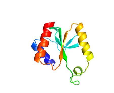 图4、Gp232的92个残基(245aa-344aa)的预测其三级结构。图像由彩虹N端-C端着色。
