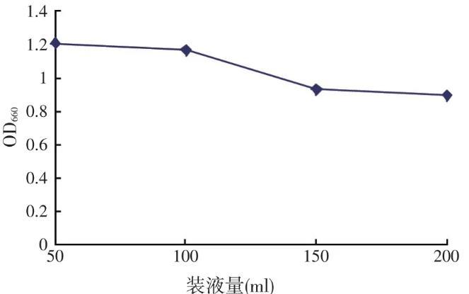 图7不同装液量对沼泽红假单胞菌R1生长的影响