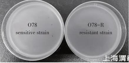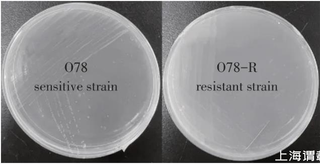 图2 O78敏感菌株与O78-R抗性菌株在普通营养琼脂培养基的培养结果