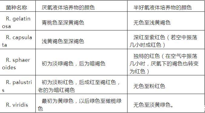 但由于培养条件的不同,其颜色在此基础上仍会有变化:如球形红色假单孢菌和荚膜红色假单孢菌的厌氧液体培养液呈茶褐色,而在半好氧(微厌氧)状态下培养液呈红色。这是因为由于氧的存在,对光合细菌色素的合成有十分明显的抑制作用。