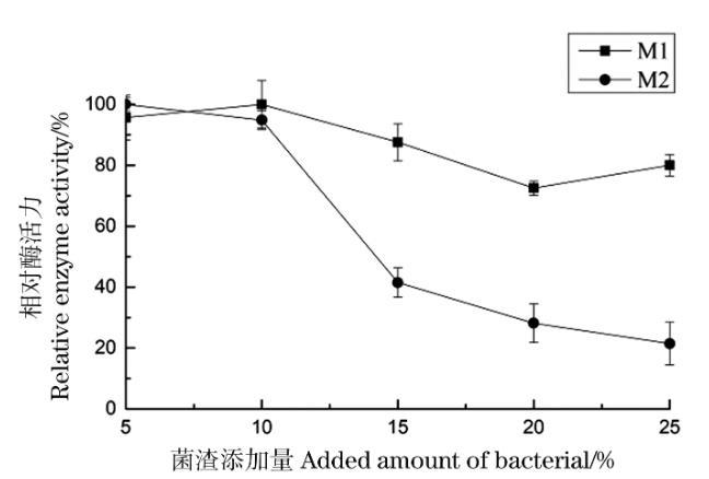 图8菌渣添加量对菌株产酶的影响