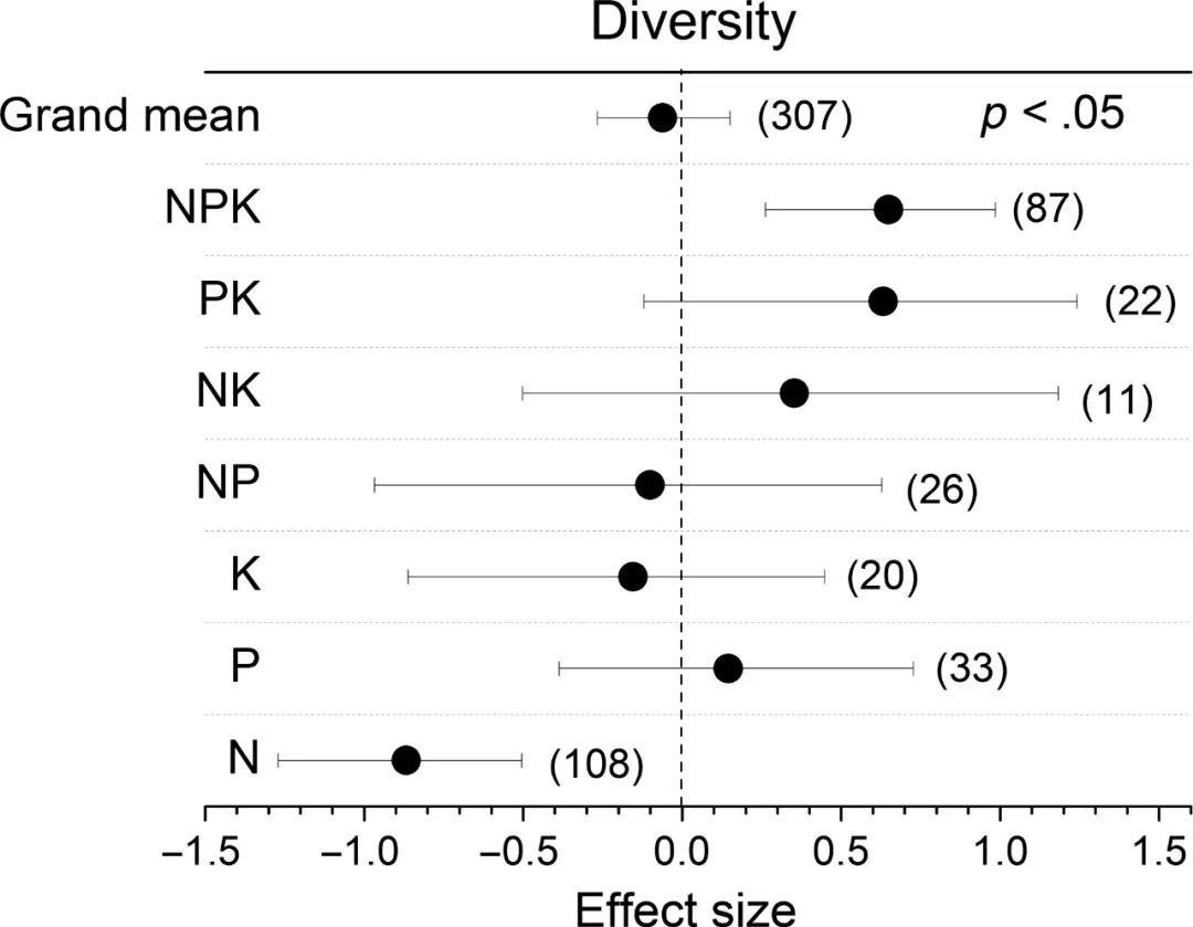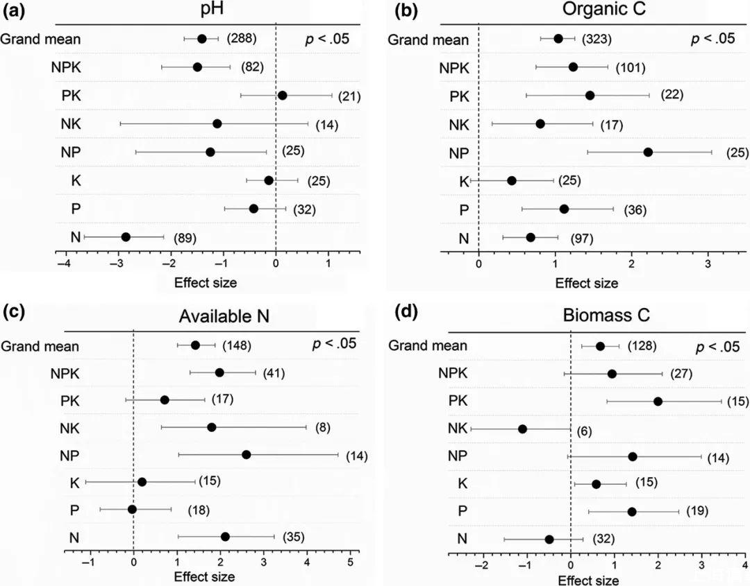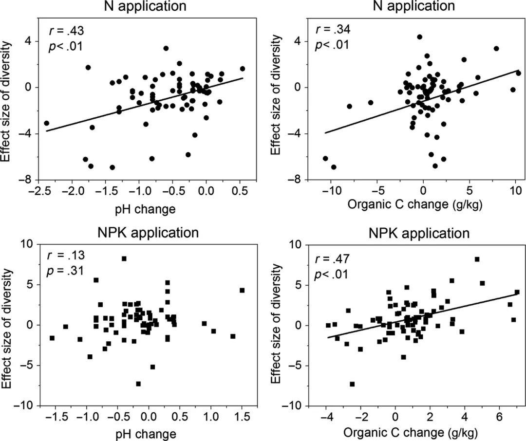 本研究首次对长期施用氮肥和氮磷钾肥对细菌多样性和群落组成的影响进行了全球Meta分析,为全球农业生态系统中维持地下微生物多样性的养分管理策略提供了参考。