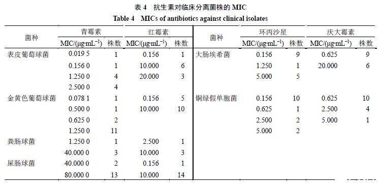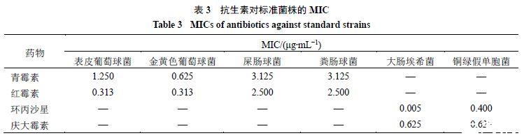 3.3抗生素对标准菌株和临床分离菌株的MIC
