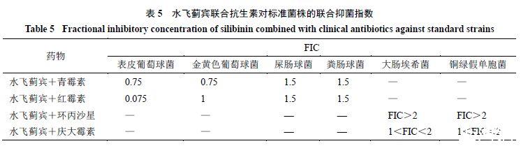 3.5水飞蓟宾与临床常用抗生素对标准菌株的联合抑菌效应
