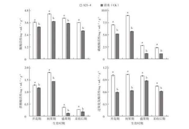 图1 普城沙雷菌对黄瓜根际土壤酶活性的影响