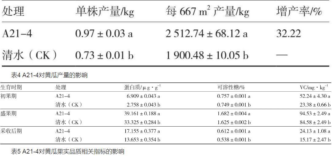 2.2 普城沙雷菌对黄瓜产量和果实品质相关指标的影响