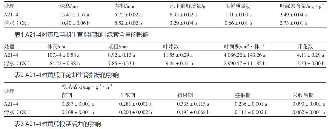 2.1 普城沙雷菌对黄瓜生育指标和生理指标的影响