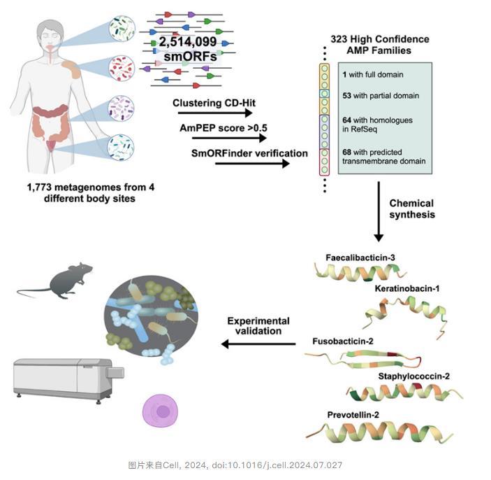 在一项新的研究中,de la Fuente实验室和斯坦福大学的Ami S.Bhatt教授对近2000人的肠道微生物组(gut microbiome)进行了调查,发现了数十种潜在的新抗生素。相关研究结果于2024年8月19日在线发表在Cell期刊上,论文标题为“Mining human microbiomes reveals an untapped source of peptide antibiotics”。