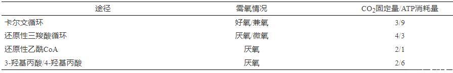 表2展示了不同碳固定途径的单次固定过程中二氧化碳固定量及所需能量的对比。从碳固定途径来看,anammox菌每固定1分子CO2需要消耗0.5分子ATP,comammox菌每固定1分子CO2需要消耗0.75分子ATP,二者细胞产率相近。Costa等研究了生长速率(growth rate)和生长量(growth yield)之间的权衡机制(trade-off),结果表明短途代谢途径微生物单位时间内生长速率较高,而长线代谢途径微生物在长期培养过程中的生长量更为显著。尤其当微生物可以在生物膜上缓慢增长时,其表现更为明显。Comammox微生物和anammox菌都适宜生长在生物膜环境中,推测在PN/A工艺的生物膜中,comammox菌和anammox菌在细胞增殖方面互为竞争关系。但在城市污水处理过程中低氨氮浓度、低溶解氧浓度的环境下,comammox微生物在底物竞争力上更具优势,因此推测comammox菌增殖是城市污水PN/A脱氮工艺出水硝酸盐升高的潜在原因之一。