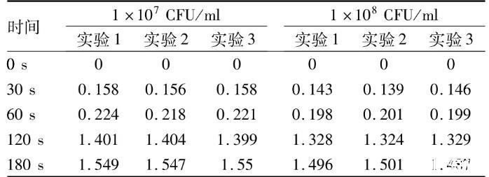 两个浓度组的各15块平皿,分为5个实验组,每组3块平皿,为了保证实验结果具有随机性和可重复性,每个小组的3块平皿在相同实验条件下同时进行实验,以实验1、实验2和实验3对其结果进行区分,分别照射0(即不经过等离子体照射,作为空白对照)、30、60、120、180 s,然后将经过等离子体照射过的平皿放置于37℃恒温培养箱中培养观察,连续3 d观察等离子体照射对沙堡琼脂培养基平皿上白假丝酵母菌的抑制作用。