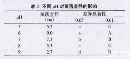 表2不同pH对菌落直径的影响