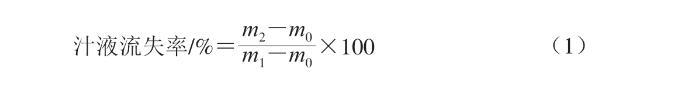 式中:m0为包装袋质量/g;m1为包装袋、汁液和鱼肉的总质量/g;m2为包装袋与汁液的总质量/g。