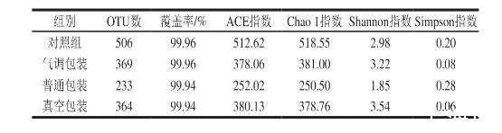 表3不同包装方式下清蒸大黄鱼细菌群落多样性指数