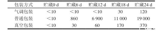 表2不同包装方式下清蒸大黄鱼4℃贮藏期间菌落总数的变化