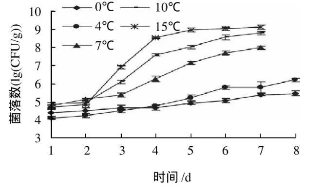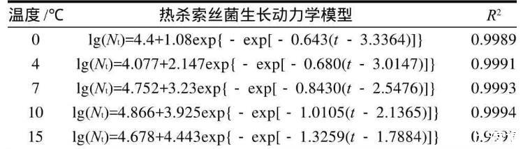 由图1可以看出,0℃条件下热杀索丝菌生长较缓慢,随着温度的升高,生长速度加快,在4℃时生长速度加快的还不是很明显,从7℃开始生长速度急剧加快,生长曲线呈典型的S型。可见温度是影响微生物生长的一个重要因素。