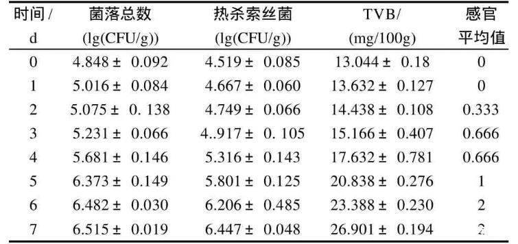 表1 3℃储藏冷鲜肉储藏过程中各指标的变化