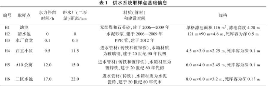 根据该市的区域供水管网特征和水质特点,选取具有代表性的供水管网开展对比分析,该供水系统取样点基础信息见表1。