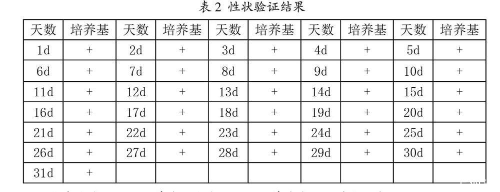 由表2可以看出,大肠埃希菌在4°C冰柜里贮藏,连续31天取菌液量均不大于100cfu,加入麦康凯液体培养基和麦康凯琼脂培养基中,培养基体现的菌落大小、形态特征、指示反应等情况均体现出大肠埃希菌应有特性(+表示)。