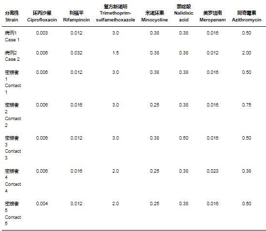 表1病例和密切接触者脑膜炎奈瑟菌检测结果和基因组信息