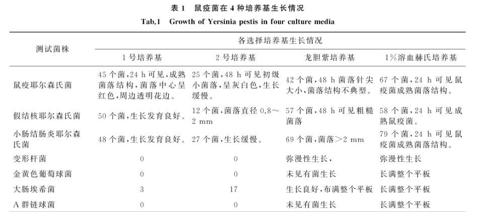 表2鼠疫耶尔森氏菌在各培养基敏感性检测结果