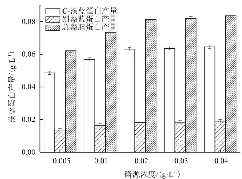 图5磷源浓度对海水钝顶螺旋藻藻胆蛋白组成及产量的影响