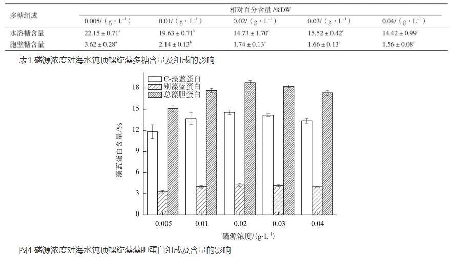 表1磷源浓度对海水钝顶螺旋藻多糖含量及组成的影响