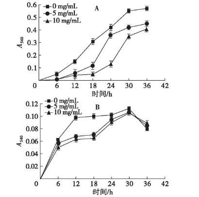注:A为蜡状芽孢杆菌,B为枯草芽孢杆菌。