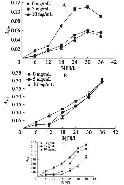 甘肃陇南油橄榄叶提取物对几种常见细菌生长曲线的影响