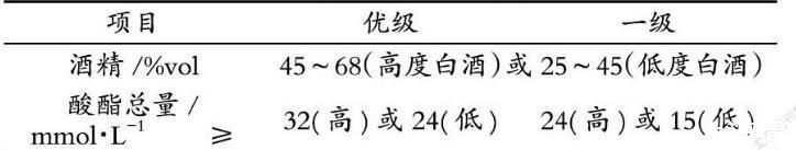 根据国家标准《特香型白酒》(GB/T 20823-2017)要求,国家规定的特香型白酒的酒精度和酸酯总量的要求见下表。
