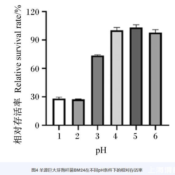 图4羊源巨大芽孢杆菌BM24在不同pH条件下的相对存活率
