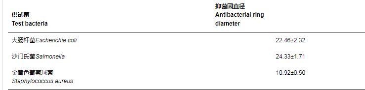 由表3可知,羊源巨大芽孢杆菌BM24对大肠杆菌、沙门氏菌、金黄色葡萄球菌均有抑制效果,其中对沙门氏菌及大肠杆菌的抑制效果较强。