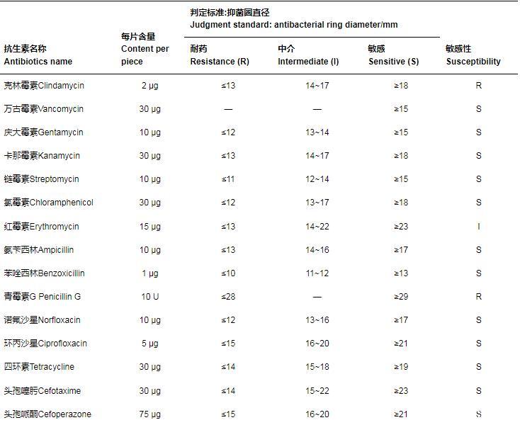 表2羊源巨大芽孢杆菌BM24药敏试验结果