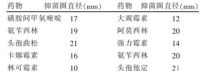 对分离的致病性链球菌进行药敏试验,结果显示,分离菌株对头孢曲松、氨苄西林、阿莫西林、头孢他定、磺胺间甲氧嘧啶5种药物高度敏感,对其他类型的药物敏感性较低。