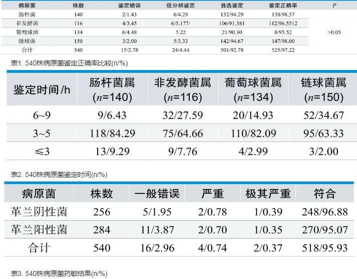 对比分析鉴定结果正确率及所需鉴定时间,分析药敏结果符合率。