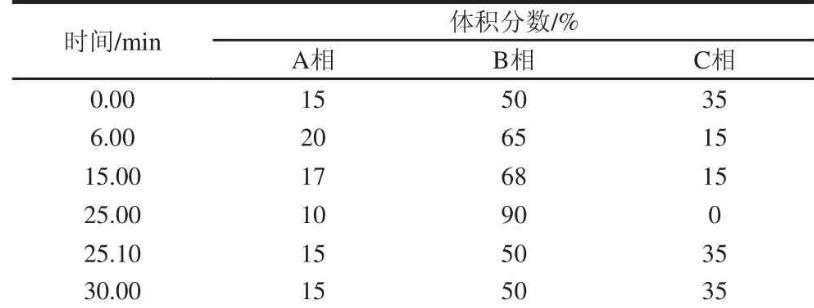 表1梯度洗脱程序表