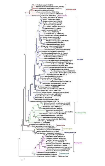 多样性的生存环境造就了多样的极端微生物,包括嗜热菌、嗜冷菌、嗜盐菌、嗜碱菌和嗜酸菌等种类??蒲Ъ掖痈骼嗉嘶肪诚路掷氤霾煌募宋⑸?,例如嗜热菌多分离自温泉和炎热沙漠、嗜冷菌多分离自寒带地区、嗜盐菌分离自盐湖等,其中芽孢杆菌(Bacillota)占比最高(图1)。