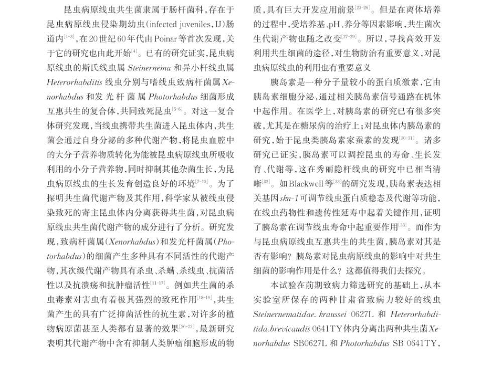 探究胰岛素对昆虫病原线虫共生菌生长曲线、发育的影响