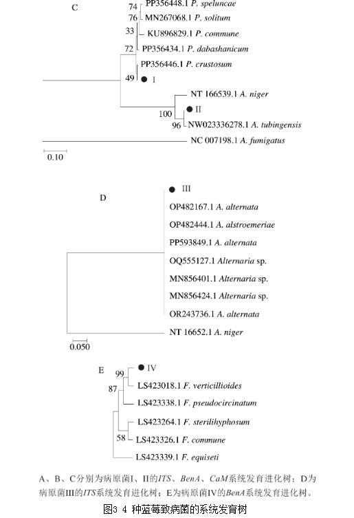 图3 4种蓝莓致病菌的系统发育树