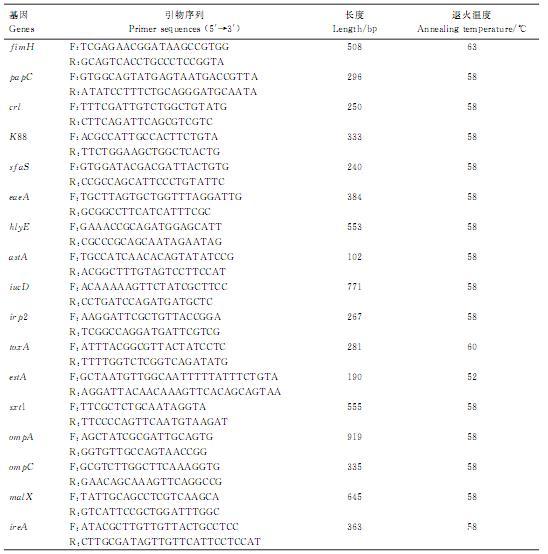 1.10毒力基因检测参考文献合成肺炎克雷伯菌18种毒力基因特异性引物,利用PCR扩增检测分离株携带毒力基因情况。PCR反应体系及程序同1.5,退火温度见表3,PCR产物进行1.0%琼脂糖凝胶电泳检测。
