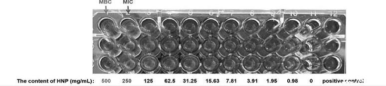 图1呼宁散(HNP)对鸡肺源大肠杆菌的MIC和MBC