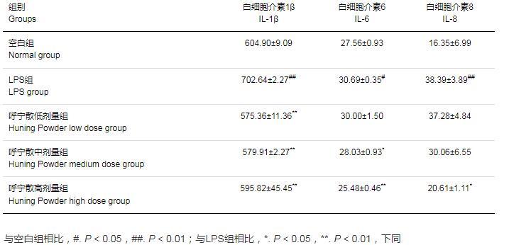 2.7呼宁散对LPS致DF-1细胞炎症因子含量的影响