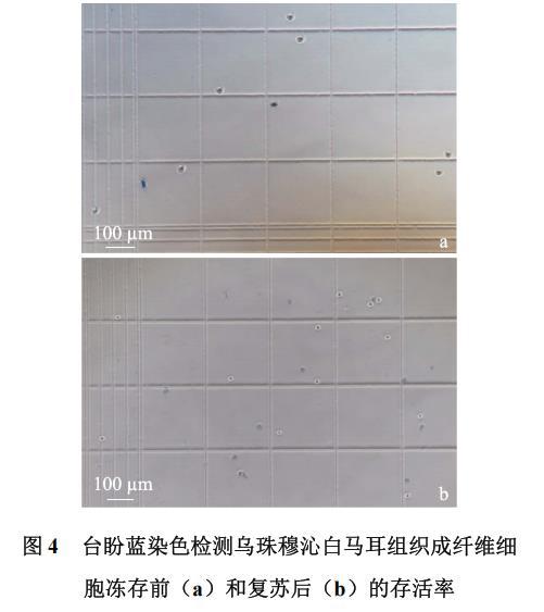 2.3乌珠穆沁白马耳组织成纤维细胞冻存前及复苏后存活率对比