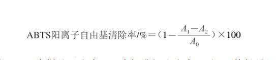 式中:A0为空白实验组的吸光度(以超纯水代替样品);A1为样品吸光度;A2为标准组吸光度(以PBS替代稀释后的ABTS阳离子自由基溶液)。