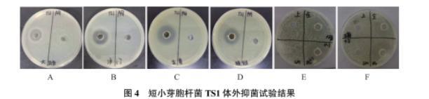 图4短小芽胞杆菌TS1体外抑菌试验结果