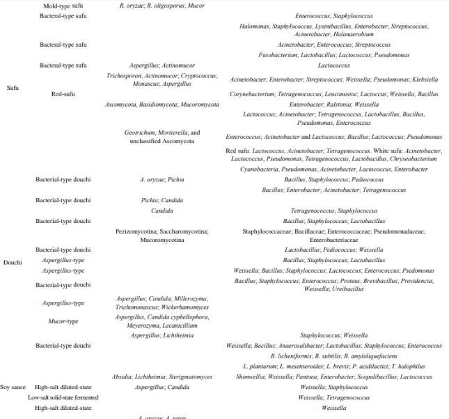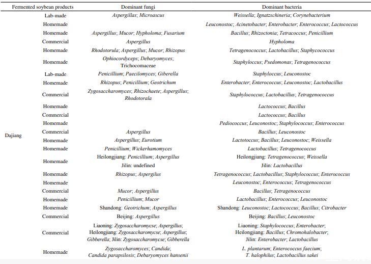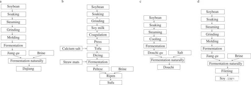 图1传统发酵豆制品(包括大酱、腐乳、豆豉和酱油)的发酵工艺流程图