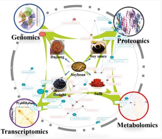 发酵豆制品的香气特征高度依赖于发酵系统中微生物群产生的初级和次级代谢产物。尽管发酵过程中产生的微生物结构和代谢物化合物已经通过高通量测序技术和质谱以及NMR进行了分析,但发酵系统中的核心微生物及其与主要风味相关代谢物的相关性仍有待阐明,并且大多数微生物通常很难评估它们是否实际参与了发酵过程,一些存在浓度非常低微生物很难确定它们是否有助于发酵豆制品独特风味的形成。培养非依赖性和多组学技术的发展为表征发酵过程中微生物群落及其在风味形成中的作用提供了新的视角。此外,可以通过使用多组学技术揭示导致特定香气形成的生物学途径。