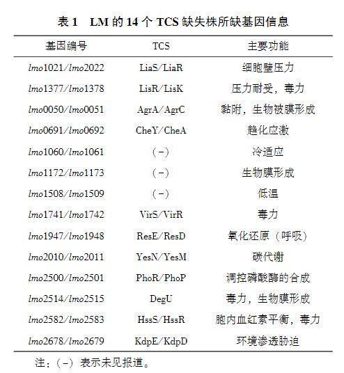 表1 LM的14个TCS缺失株所缺基因信息