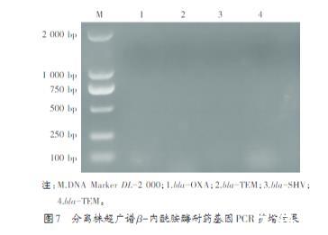 用特异性引物分别扩增超广谱 β-内酰胺酶耐药基因 bla-OXA、bla-TEM、bla-SHV、bla-TEM,结果显示,4 种基因扩增结果均为阴性,表明 P201215 菌株均不携带所检测的 4 种 β-内酰胺酶耐药基因。
