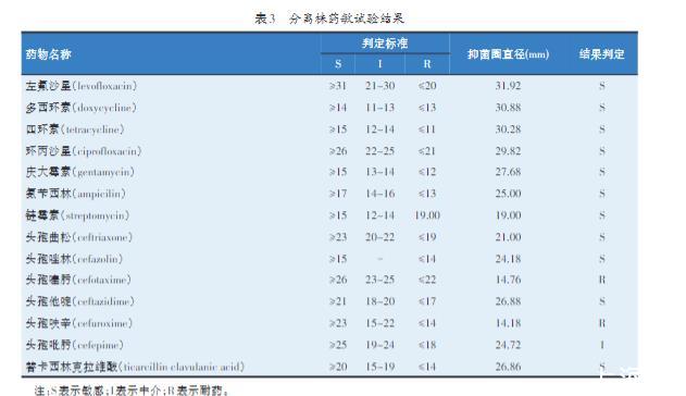 对分离株进行 β-内酰胺类、喹诺酮类、四环素类及氨基糖苷类的药敏试验,结果表明,分离菌株对某些头孢菌素类药物耐药,对大部分 β-内酰胺类、喹诺酮类、四环素类及氨基糖苷类药物敏感。