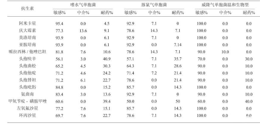 气单胞菌所属科、流行病学特点、耐药率分析